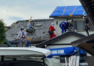 本日は、倒木の細断、運び出し、破損した屋根への対応、床下の乾燥作業を行いました。