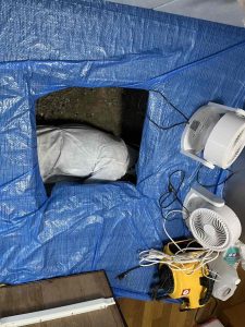 ボランティアさんは、床下の乾燥状態を確認し、2週間前に設置した送風機とサーキュレーターの回収作業を行いました。ありがとうございました。